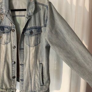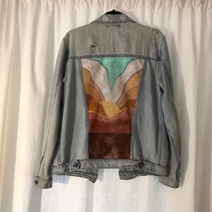 Super Cool hand painted one of a kind custom denim jacket. Worn look.