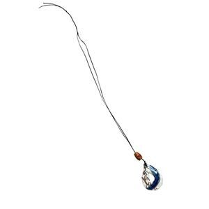 Done in a traditional Māori style is this hand made pendant necklace from New Zealand. It's on a thin black cord with a red clay bead and a white, hand-painted tear drop shaped pendant. It has blue, grey and red paint and is signed on the back Made in NZ. This is a ceramic piece most likely designed for a tourist shop that showcased Maori art. It's unisex, currently tied to measure 30", but since it's cord you can adjust the length.