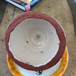 Hand painted Portuguese Pottery Clay Terracota Dish with Lid Floral Design