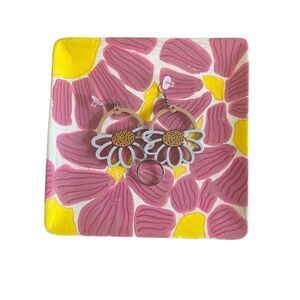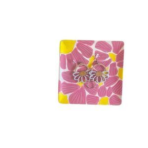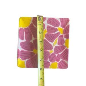 Hand painted Trinket vanity tray abstract pink yellow floral one of a kind