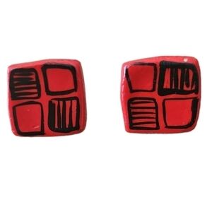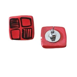 Whimsical gorgeous Hand painted ceramic stud earrings, black and red