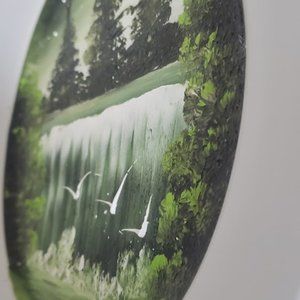 Hand painted decorative plate art artwork wall decor decoration Forest waterfall birds ceramic plate