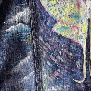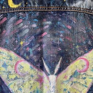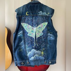 Hand painted denim vest Luna Moth Cloudy Stars