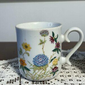 Gorgeous multicolored wild flowers on white porcelain. No maker’s mark. Very slight usage wear on rim. No chips. Excellent.