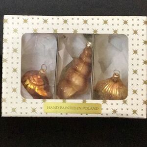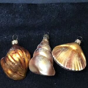 Hand painted gold, and glittery, seashell ornaments from Poland