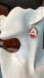 Hand painted harp seal Christmas holiday earrings, red green rhinestones