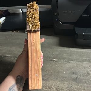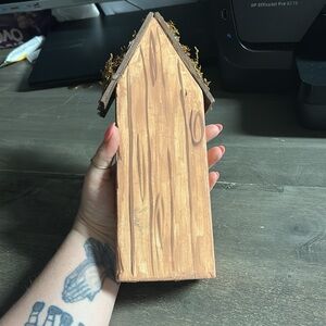 Mary Joseph & baby Jesus hand painted nativity scene on board. Stands on own
