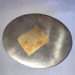 Hand painted oriental lady scene on porcelain disk, metal bottom & trim. $19