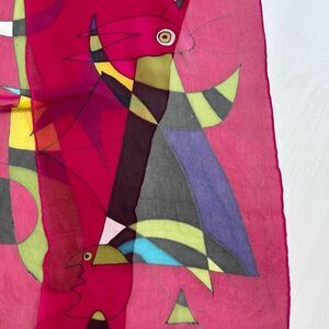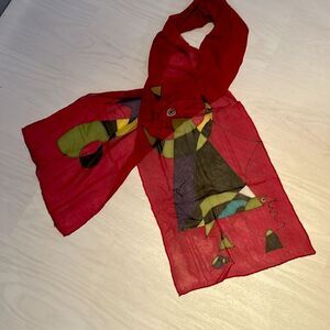 Stunning new red hand painted modernist artist scarf. This is from a fiber arts boutique that closed in Hawaii, it’s unsigned but elegant and unique, hand rolled edges. Mint unused condition, please see all photos for full details.