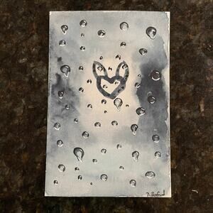 Hand painted watercolor original painting raindrops 4x6”