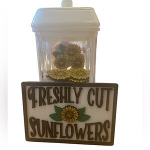 Brighten up your party with this charming sunflower-themed jar. Perfect for adding a touch of nature to your home decor. If you just want the decorations, please let me know. Jar has a crack on the lid shown in pics but does not affect the use of it. Can buy without the jar.