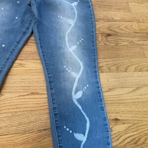 Hand reverse dyed painted flowers vines Jeans size 12 skinny