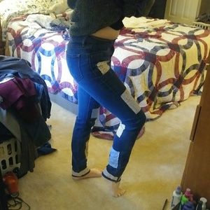 Hand reworked vintage floral patch denim jeans. β super hippie vibe. Created from old navy sweetheart jeans size 3-5 and with vintage floral swatches of fabric ππΌπ·πΏ i took great care and painstakingly hand sewed each patch on. Has zippers at the ankles. Will add measurements when i get a chance π pm me with any questions or for more pictures! Open to offers, no swaps on this item. These are comfy and look really great, I've gotten all limbs of compliments when I've worn them out! Enjoy! βΊ