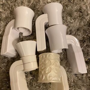 New the only issue is the label is missing off the front of one bottle and the tops are chipped on most of them but they work and are locked and don’t leak.
