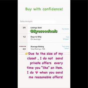 Bundle & save on shipping + bundle 7 items or more & receive an automatic 30% off. We have baby, kids, men’s, women’s, home goods& soft toys! All from smoke free pet free home. Reasonable offers welcomed. Gift wrapping available upon request!! Thanks for looking!!!