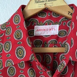 Aaron’s Int’l button shirt Hong Kong red paisley monogram pocket pimp retro 60s