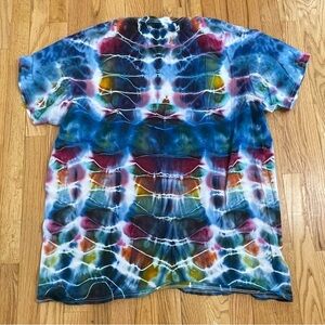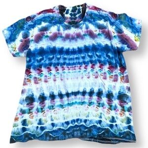 Hand tie dyed tshirt cosmic egg psychedelic kaleidoscope vneck 2XL blue
