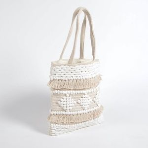 A celebration of textures and techniques, this briliantly designed tote bag is spruced with tufts, tassels and stellar threadwork! Crafted from pure cotton with a solid color palatte, it is a picture of sheer elegance and is sure to make summer style statement! With careful needlework all along, the tufted details on this bag are done by punching clusters or loops of yarn through the fabric with the help of a needle to create the embossed look. The creation process may be unhurried as compared to its machine-made equivalent; however, the final product bears that unique artisanal punch of exclusivity!
