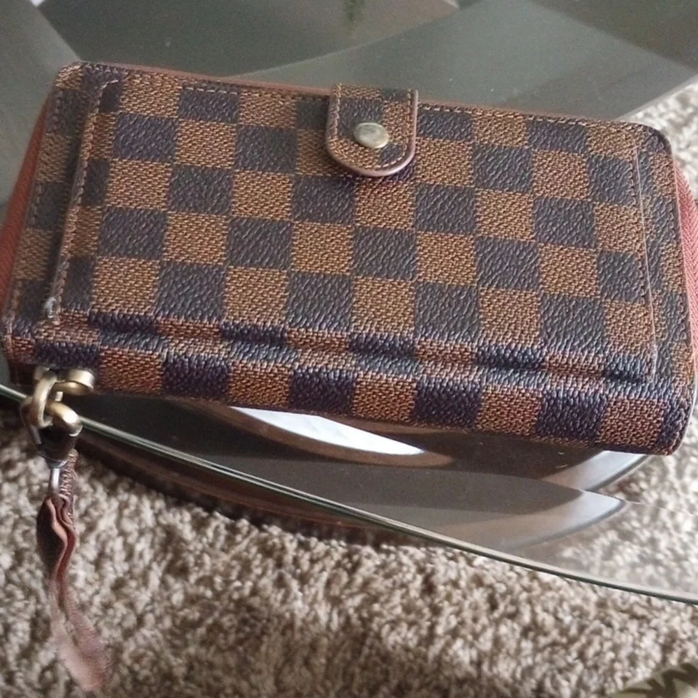 it's a cute hand wallet with enough space for cards, cash and coins. it's only used 4 times.