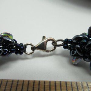 This listing is for the handwoven "spiky" bracelet pictured. It was handwoven by me using high quality line, hematite colored two holed beads, and rizo beads that have a rainbow "magic" coating that makes them shine. It is one of a kind and is 6.5 inches. It is finished with a Sterling silver lobster claw clasp marked 925.