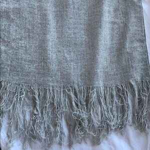Hand woven light grey wool shawl scarf gold thread