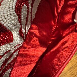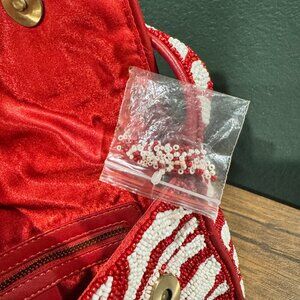 This bag is in perfect condition- the only thing missing is the tag. The extra beads are still attached to the inside of the purse, the inside is unused, and there is not a single bead missing from the outside.
