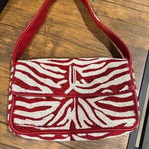 Hand-Beaded Staud Tommy Beaded Bag in Scarlet White $250