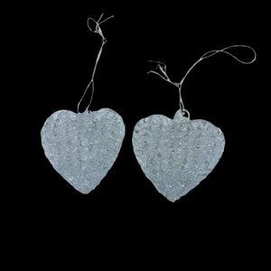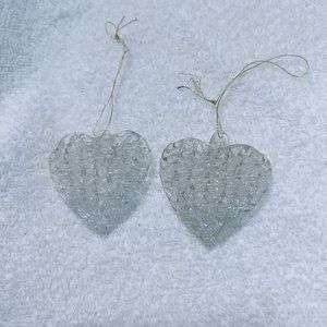 HandBlown Clear Glass 2”x2” Hearts Lot of 2 Christmas Ornaments Glittery Sparkle
