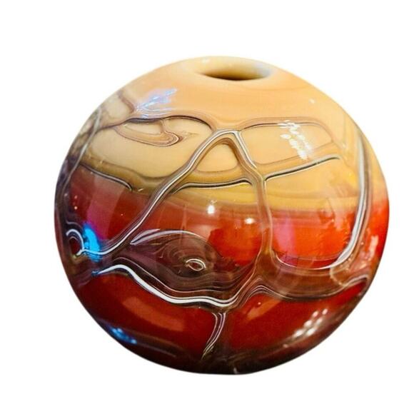 Give the gift of art this Valentine’s Day! This stunning hand-blown Venetian glass vase is a statement piece, featuring vibrant orange hues with flowing abstract swirls in earthy tones. Its dynamic design creates an elegant and bold visual effect, making it the perfect centerpiece or display item for any space.