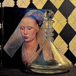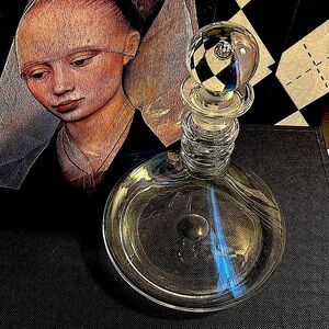 The exceptional clarity and intricate stopper design speak to its high quality. In excellent condition with no chips or cracks, this decanter is perfect for whiskey, wine, or simply as a stunning decorative piece.