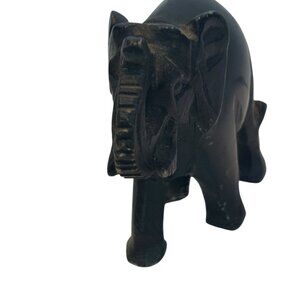 Hand-Carved Black Stone Elephant Figurine 3" Tall Decorative Accent Collectible