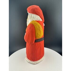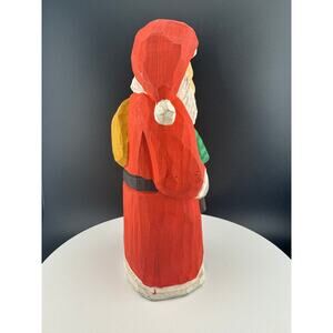 This hand-carved wooden Santa Claus ornament brings classic holiday charm to any home. With vibrant red, green, and white hues, it embodies the festive spirit. Intricately detailed with a rustic finish, it is perfect for mantel displays or tabletop centerpieces. Celebrate the season with this traditional piece that adds warmth and nostalgia to your decor.