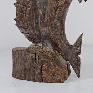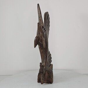 This ironwood swordfish or marlin sculpture brings a touch of nautical elegance to any room. Its hand-carved details showcase skilled craftsmanship, making it a unique decor piece.