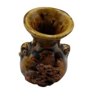 Hand-Carved Japanese Ceramic Vase 3.25 Inches Tall