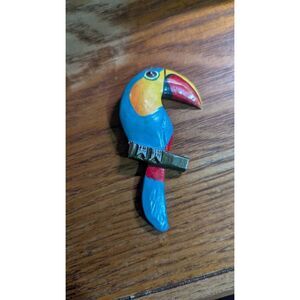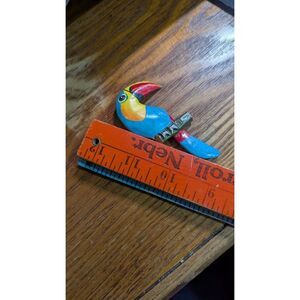 Hand-Carved Parrot Earrings & Brooch Set - Vibrant & Quirky jungle tropical