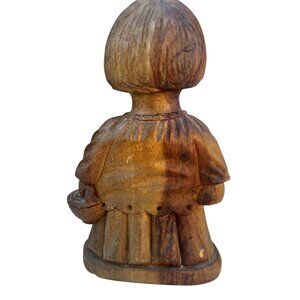 Hand-Carved Solid Wood Figurine Of A Choir Boy Singing Holding Basket