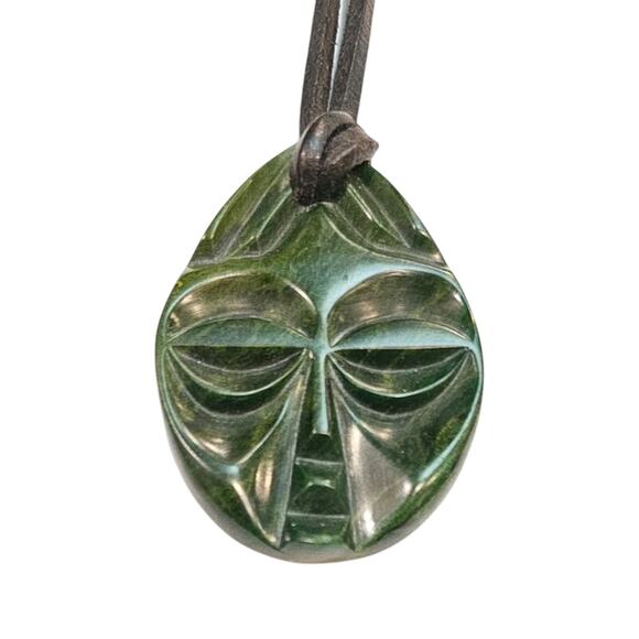 Hand-Carved Verdite Mask Pendant on Leather Cord Necklace | South African Style