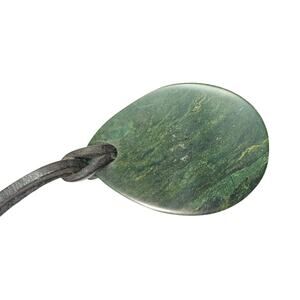 This striking pendant necklace features a hand-carved mask, meticulously fashioned from deep green Verdite stone. Verdite is a unique serpentine mineral primarily found in South Africa and Zimbabwe, often used in culturally significant carvings. This stylized mask, with its distinct facial features, reflects the rich artistic traditions of Southern Africa. While specific mask meanings can vary, African masks generally embody spiritual beliefs, ancestral spirits, or aspects of identity and protection.