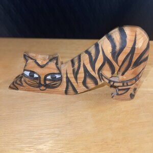 Hand-Carved Wooden Cat Figurines With Tiger Stripes