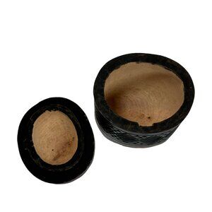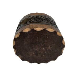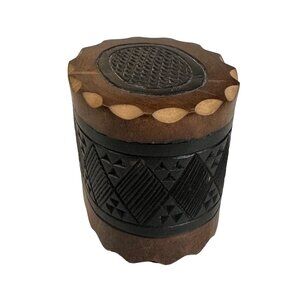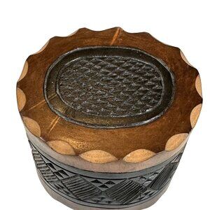 Hand-Carved Wooden Salt/Trinket Box With Intricate Tribal Design Vintage