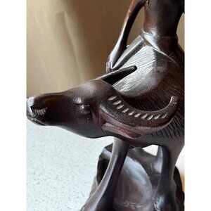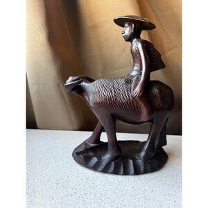 Hand-Carved Wooden Sculpture Of Man On Water Buffalo Vintage