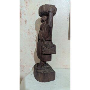Looking for a wooden friend who always has a basket on their head? This hand-carved figure brings charm, culture, and unwavering balance to your decor.