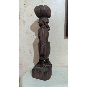 Hand-Carved Wooden Tribal Figure Basket Bearer Folk Art Statue 15" Rustic Decor