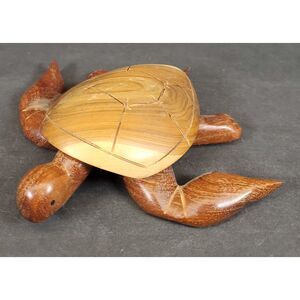 Hand-Carved Wooden Turtle Figurine 3.5″×3.5″ Rustic Wood Decor