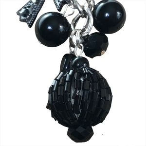 Super adorable keychain with beautiful mixture of black beads dangling along contrasting metal chain & cross charm.