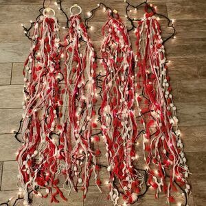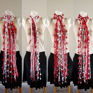 Hand Crafted Boho Wall Hanging Decor or Scarves Red White and Silver set of 4