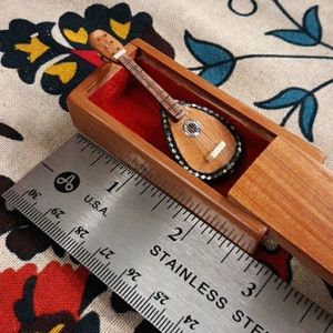 This is a very Neat and Unique Piece Handcrafted with Excellent Mother of Pearl inlay. This is in Superb Condition comes with its felt linee box. The Guitar itself measures 2 1/4" long by 3/4".The case is 2 3/4" by 1 1/4". Everything is pictured. Bundle any 3 items and get 10% off instantly. 🎼✌✔❗🎶