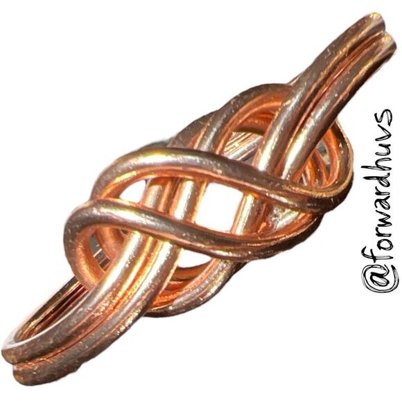 This handmade cuff bracelet is crafted from solid copper wire, twisted and knotted into a bold rope-style design that wraps around the wrist with texture and strength. The metal has a warm, reddish tone with natural patina, giving it a rustic, earthy appeal.
