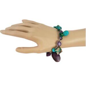 DESCRIPTION: Hand-Crafted Wire Wrapped Purple & Turquoise Gemstone Bangle Cross Bracelet
