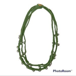 Hand Crafted Crochet Boho Bead Necklace Green Gray Beads Wood Button Pearlcore